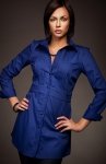 Nife K23 koszula Koszula o nowoczesnym kroju łączącym w sobie zalety koszuli, a także tuniki. Model pasuje zarówno do jeansów, jak i eleganckich spodni bądź spódnicy. Fason koszuli idealnie tuszuje niedoskonałości figury. Ukryty z boku zameczek ułatwia jej zakładanie. Wyjątkowa propozycja dla kobiet ceniących wygodę i elegancję. Skład: 60% bawełna, 40% poliester.